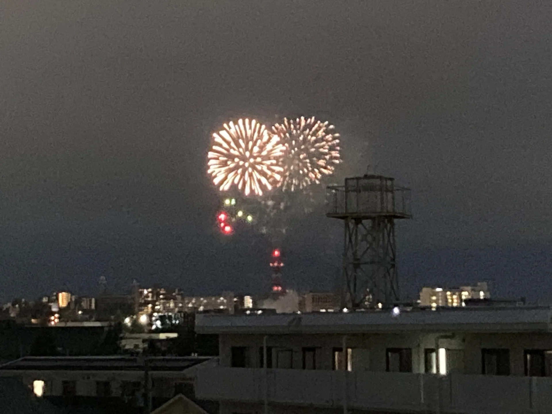 毎年恒例の楽天花火 玄関先から鑑賞。